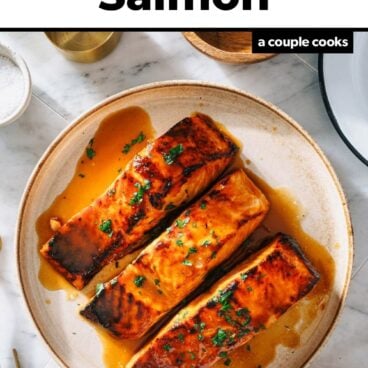 This honey glazed salmon recipe is broiled salmon, an efficient method that skips the oven preheating time and cooks the fish in just 10 minutes! You can also make this recipe oven baked or grilled (see below), but our favorite way is broiled because it’s so quick and it gets nicely crisp and browned on top. Oven baking can work, but the salmon comes out more moist and soft. Here are a few tips for this recipe: