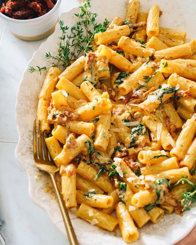This sun dried tomato pasta is creamy, cozy, and a crowd-pleasing dinner idea! This recipe is simple to make with maximum wow-factor.