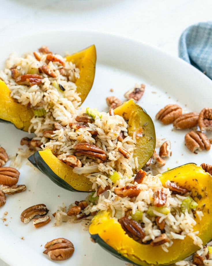 - Roasted Acorn Squash with Wild Rice Stuffing