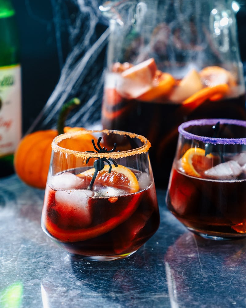 - Garnish with blood orange slices and Halloween cocktail picks. When you’ve polished off the sangria, you can snack on the sweetened fruit.